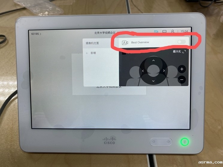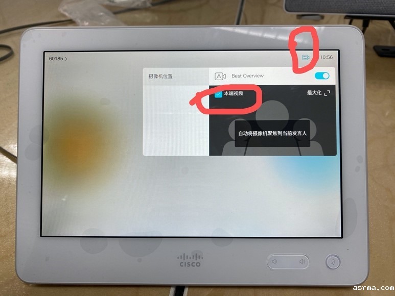 第七步、固定本分会场画面。点击操作屏右上角“摄像机”图标,关闭“SpeakerTrack”或“Best Overview”。