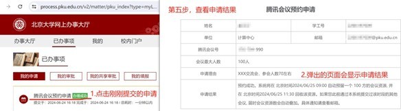 4. 进入北京大学信息门户-办事大厅-腾讯会议预约申请,填写会议号等信息并提交
